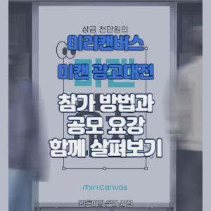 '미캔 광고대전'은 누구나 쉽고 재미있게 디자인 콘텐츠를 만들 수 있도록 지원하는 미리캔버스(Miricanvas)의 광고형 공모전입니다. 디자이너를 꿈꾸는 대학생, 콘텐츠 크리에이터, 디자인에 관심 있는 일반인 등등 남녀모소 모두가 참여 가능하며, 최대 상금 1,000만원 규모의 공모전입니다.